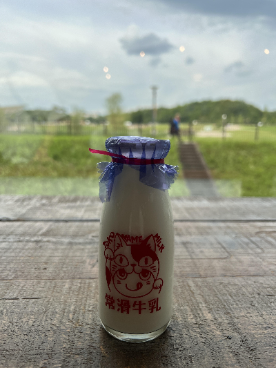 나오는 길에 굿즈샵 앞에 우유를 팔고 있어서 병우유 하나 먹었는데